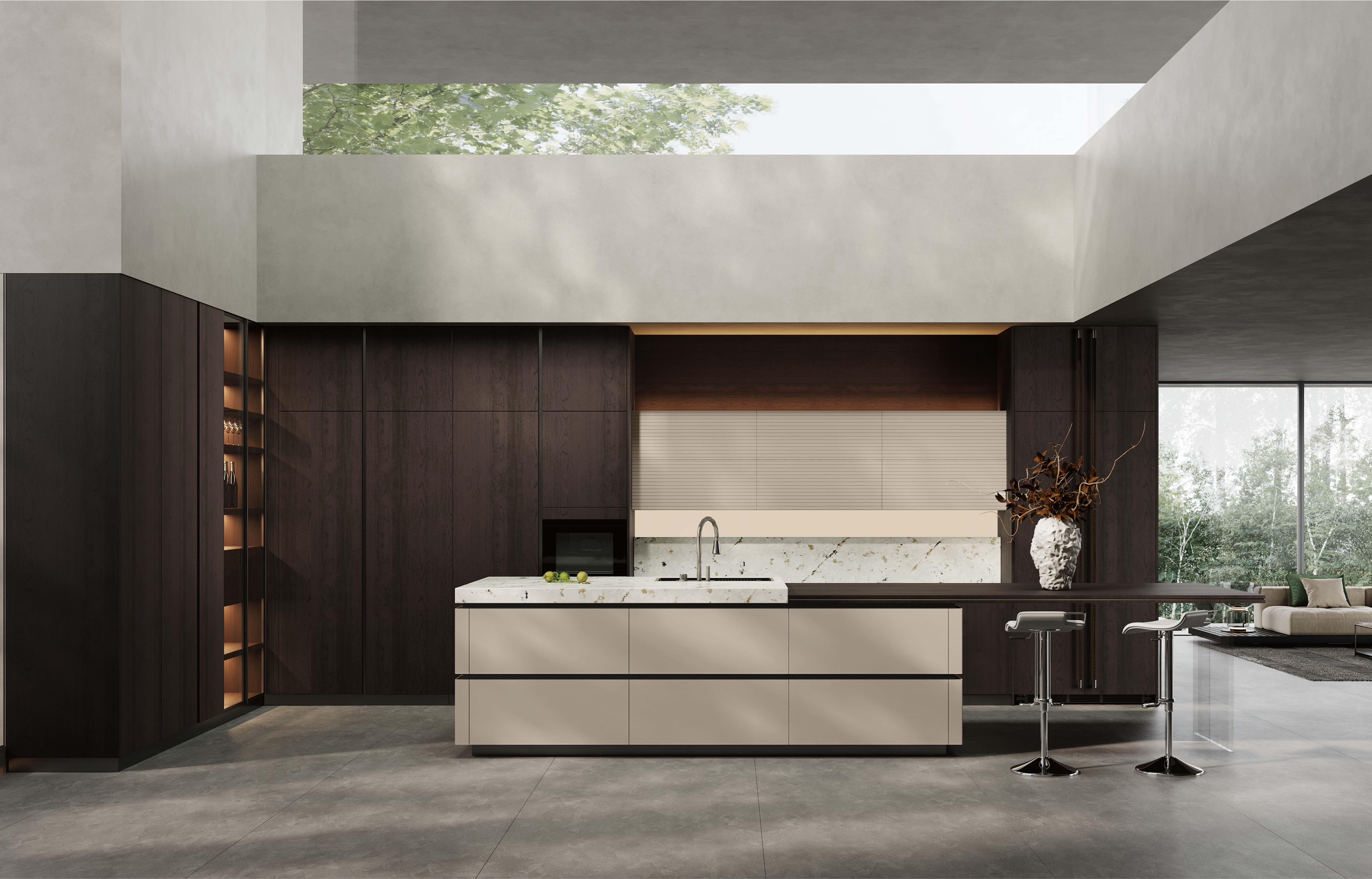 通过开云电竞厨柜量体裁柜,定制出适合主厨下厨的烹饪区和洗涤区的舒适高度。
